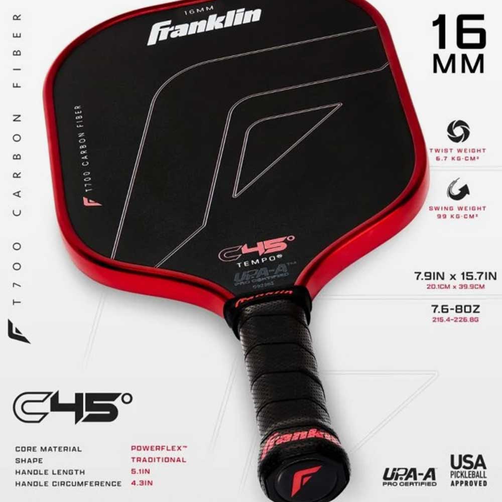 Raquete de Pickleball Franklin Pro C45 Tempo 16mm - Carbono T700