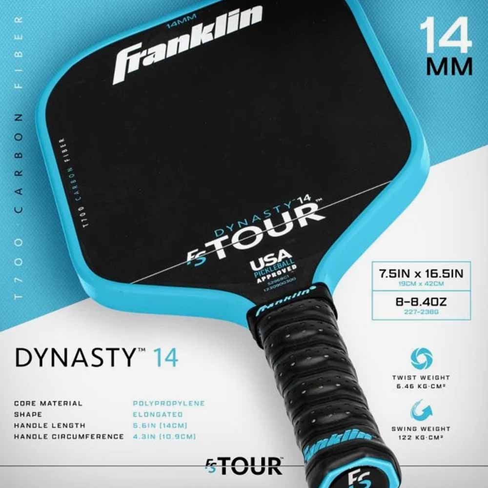 Raquete de Pickleball Franklin FS Tour Series Dynasty 14mm - Carbono Bruto T700